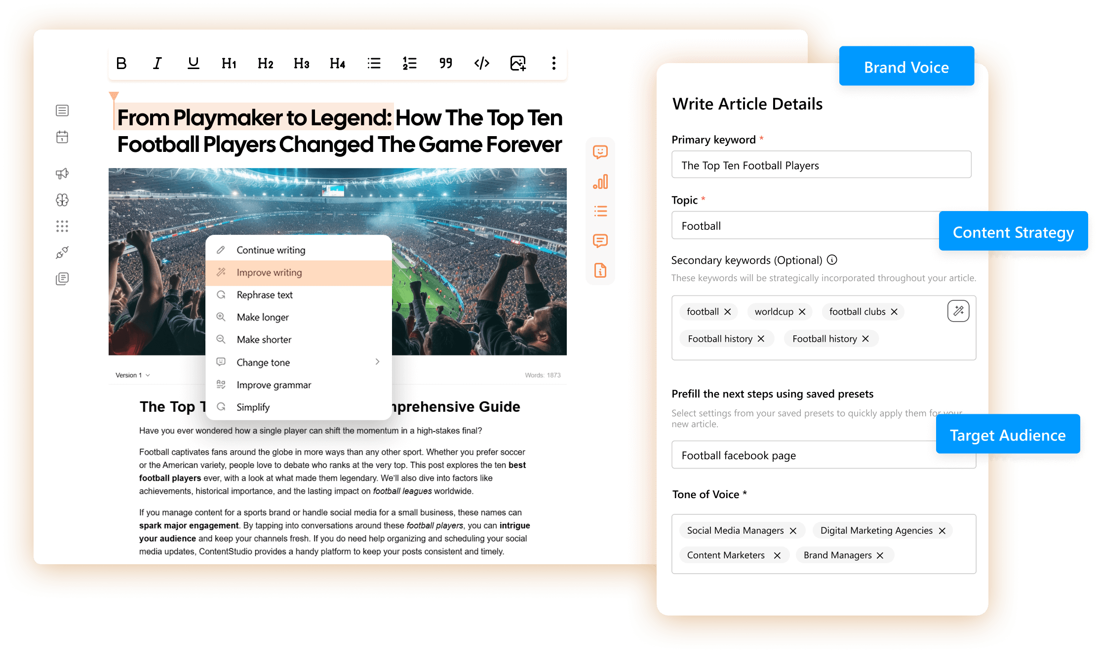 Plan, create, and publish blogs from one place, making it easier to manage large volumes of content while keeping quality, consistency, and traffic on track.